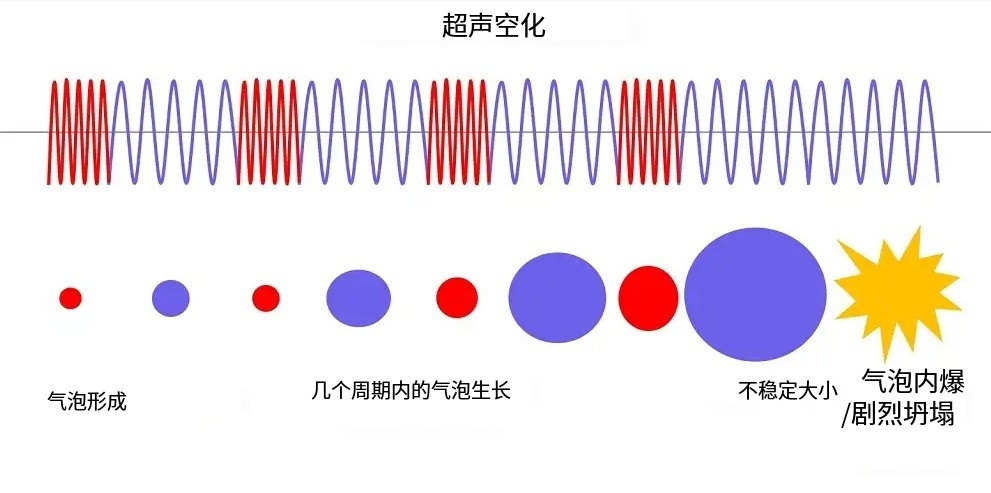 その中心的なメカニズムは前述の「音響キャビテーション効果」と一致していますが、適用対象は異なります。